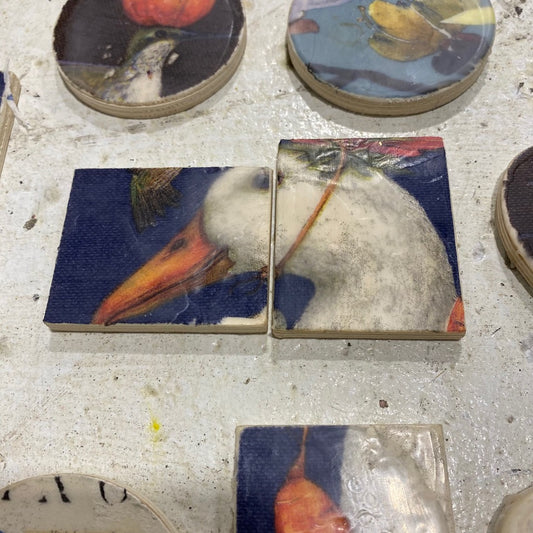 TWO Worlds Collide - Encaustic Tiles/Magnet Art
