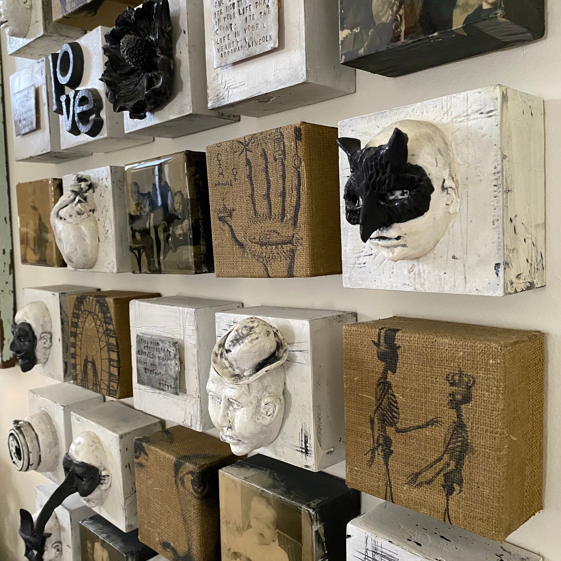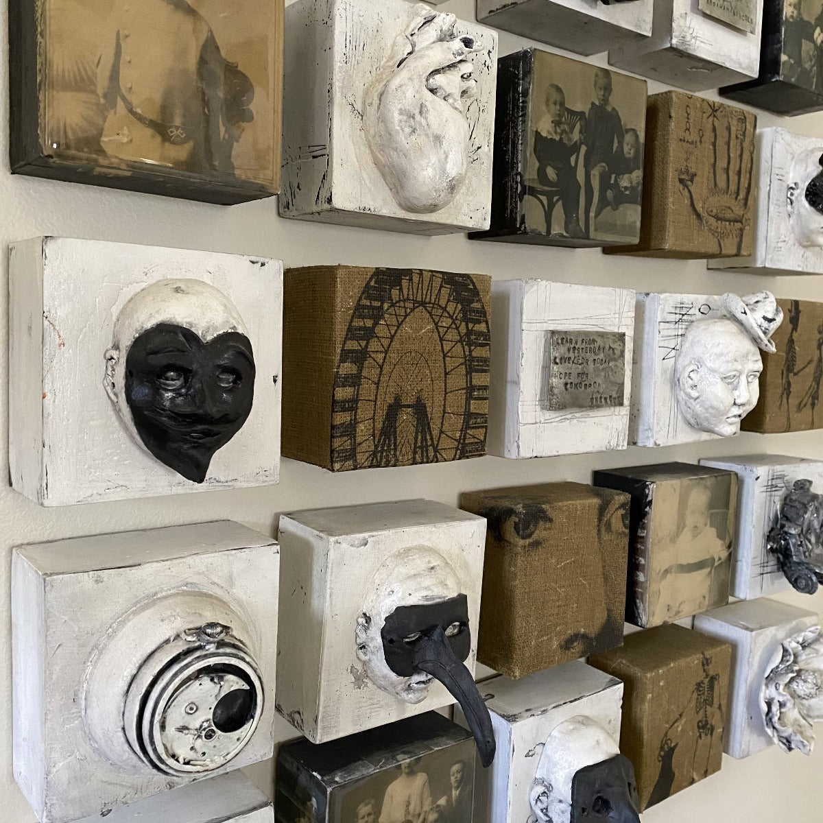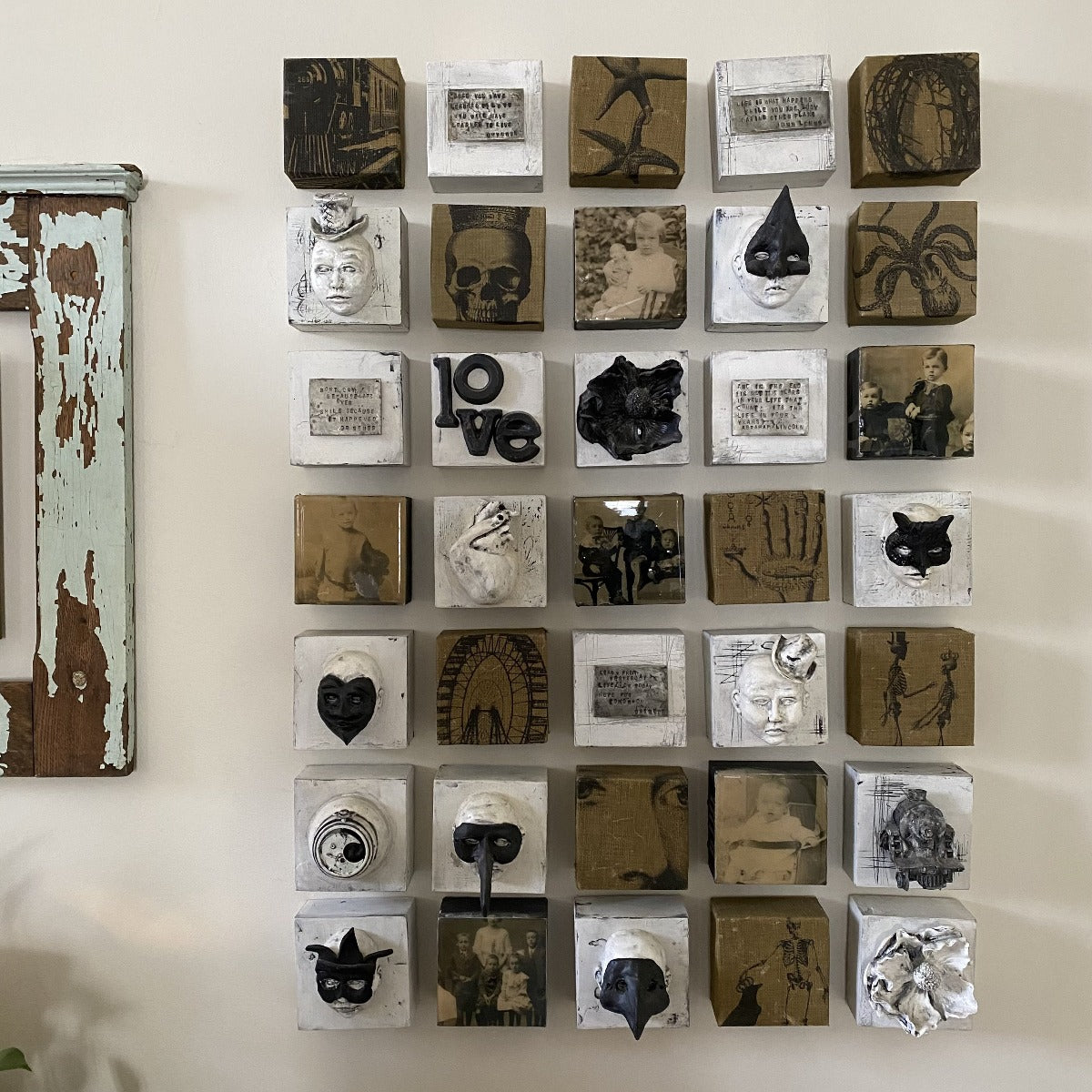 35 small individual tiles of original art can be configured in any pattern to tell the story of an individual’s travels through time