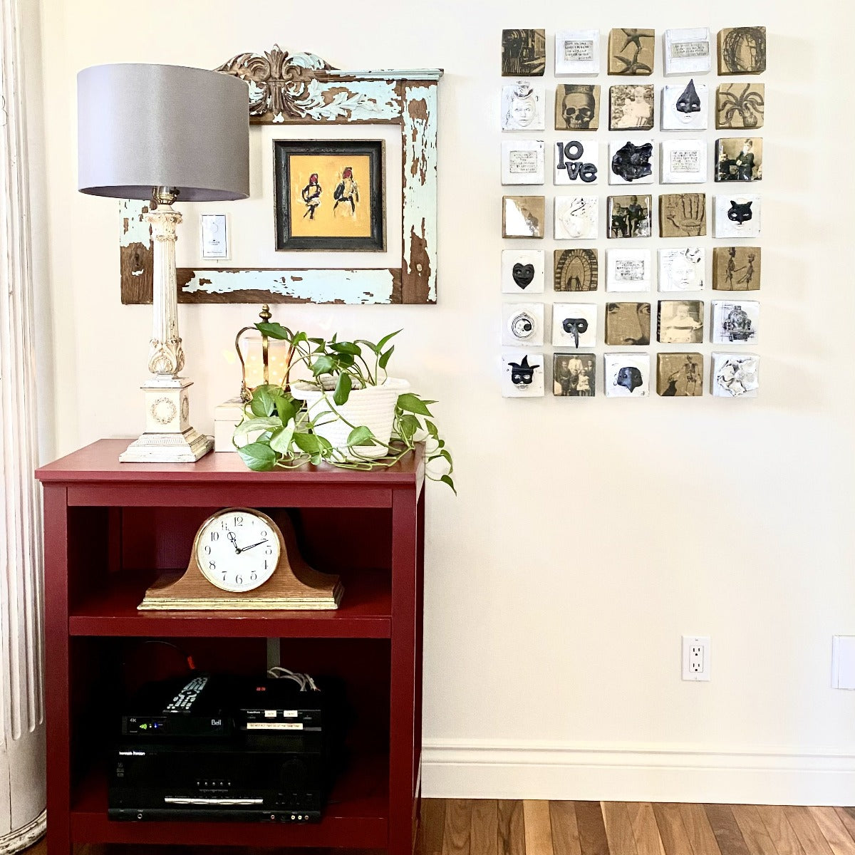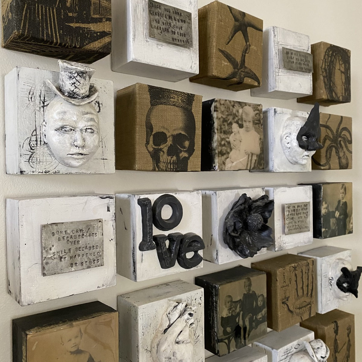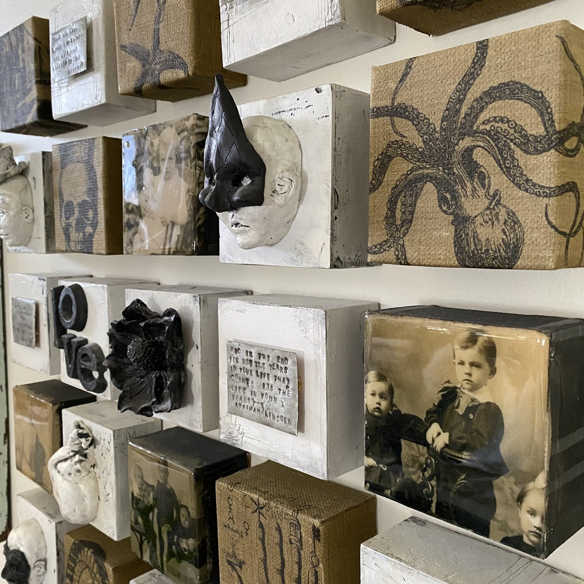35 small individual tiles of original art can be configured in any pattern to tell the story of an individual’s travels through time