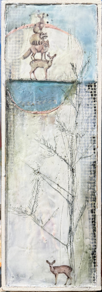 COST: ON SALE until store opening! This course includes all supplies to complete a 6”x 20” painting ready to hang on the wall. All paints, papers, and encaustic collage will be included with this fee.